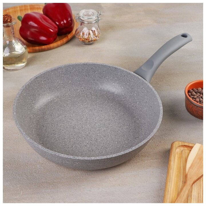 KUKMARA Сковорода с ручкой, антипригарное покрытие, d26 см, h60 мм, цвет светлый мрамор