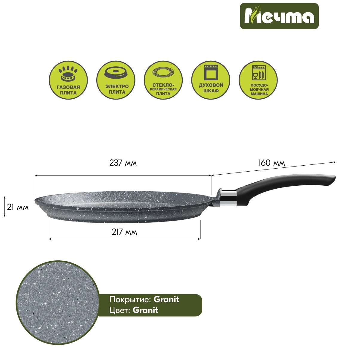 Сковорода блинная Мечта Посуда мечта Гранит, 22 см