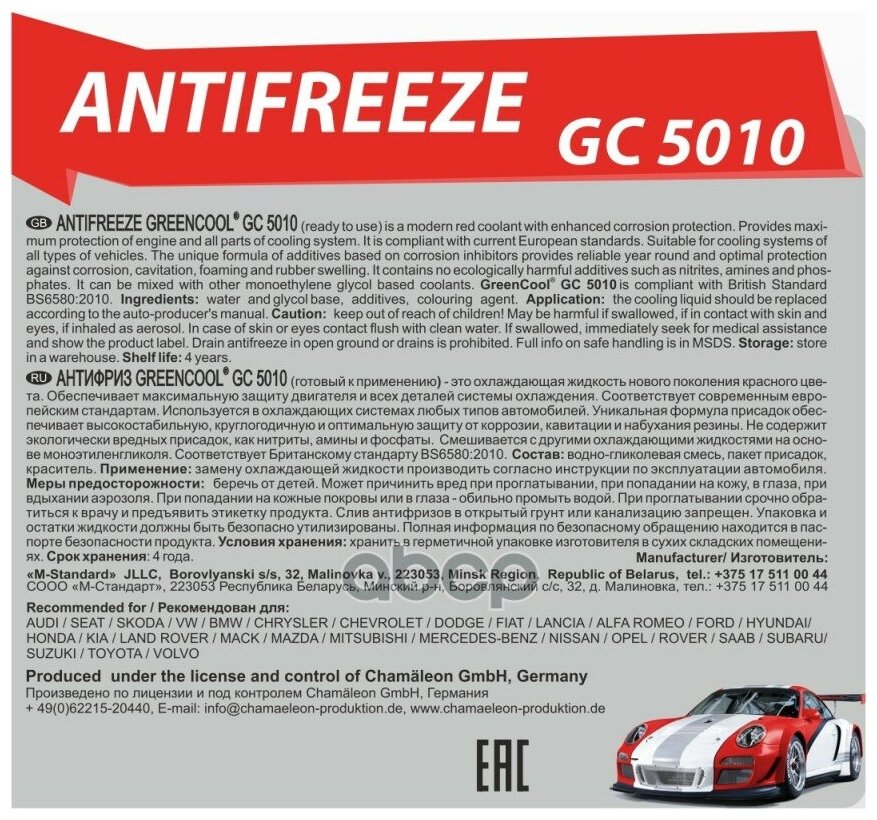 greencool gc5010 5kg_антифриз !791685 красный готовый -40°c\ 1 500 ₽ Подробнее