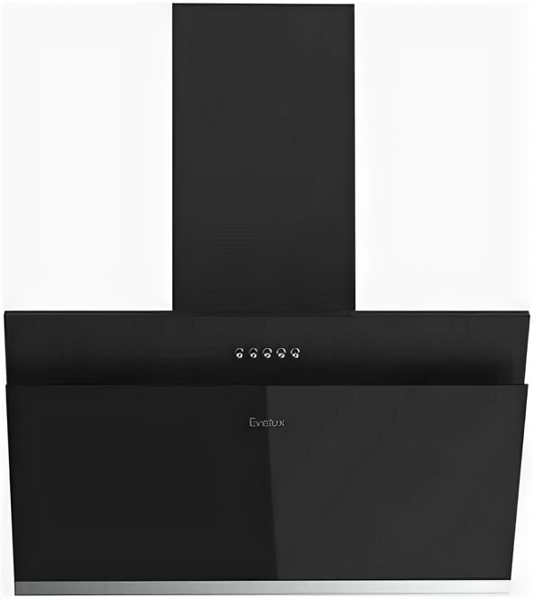 Вытяжка EVELUX Наклонная 60 см, механический контроль, 3 скорости работы, производительность 900 м3/ч, LED освещение, черный, металл, стекло, 600 x 291х368-607 мм.