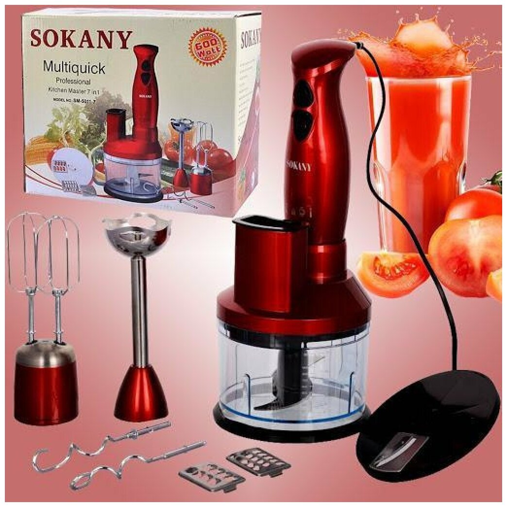 Кухонный комбайн SOKANY 5011-7/погружной блендер/ Мощность 700 Вт/7 в 1/ красный