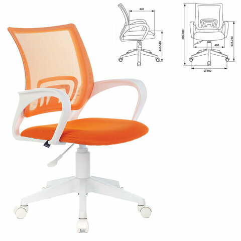 Компьютерное кресло Кресло BRABIX "Fly MG-396W", с подлокотниками, пластик белый, сетка, оранжевое, 532401, MG-396W_532401