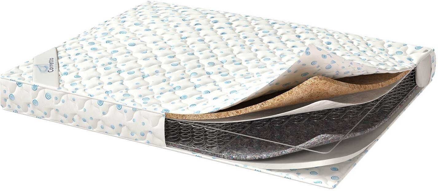 Лучшие цены. Бюджетный матрас Corretto Bussiness 2 можно охарактеризовать как практичную двустороннюю модель с двумя разными по мягкости поверхностями. Здесь есть средняя жёсткость и выше среднего. Чтобы выбрать подходящий вариант достаточно перевернуть изделие. Наполнители: Для придания отличительных свойств поверхностям производитель использовал различные наполнители. Так сверху матраса проложен упругий и мягкий пенополиуретан, а снизу установлена плотная волокнистая кокосовая койра. Магазины в вашем городе.