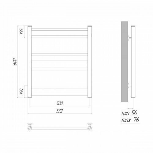 Полотенцесушитель водяной Lemark Ursus LM72607BL П7 500x600, черный