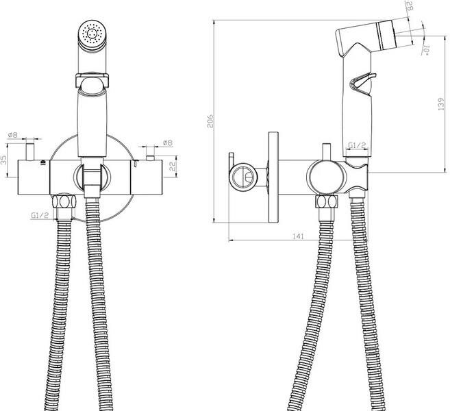 Гигиенический душ Rossinka X X25-58 с термостатическим смесителем