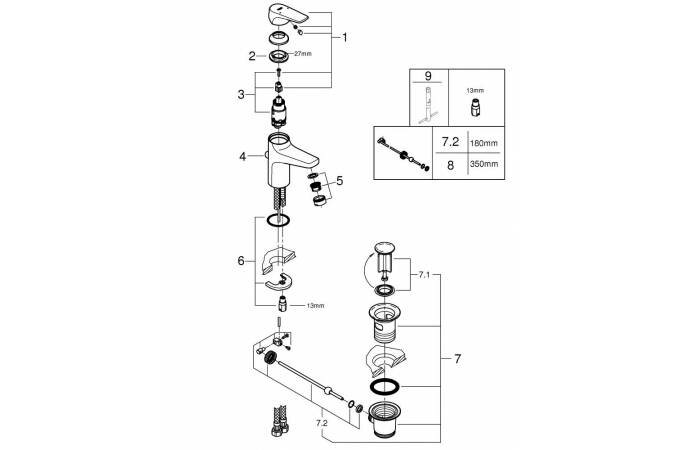 Смеситель для раковины GROHE BauFlow 23751000 с донным клапаном, S-Size