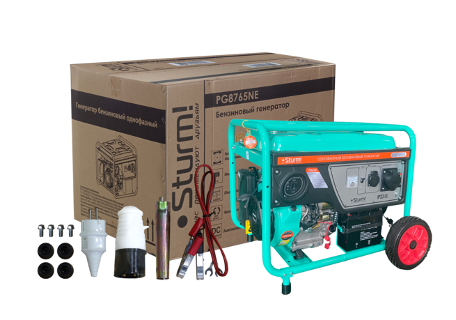Генераторы PG8765NE Бензогенератор Sturm!, 6500 ВА, AVR (Авто. Рег.Напр.), эл/ручн старт, 76 кг,бак 25 л
