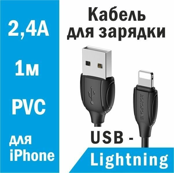 Кабель для айфон USB BOROFONE BX19 Benefit USB - Lightning, 1.3А, 1 м, черный
