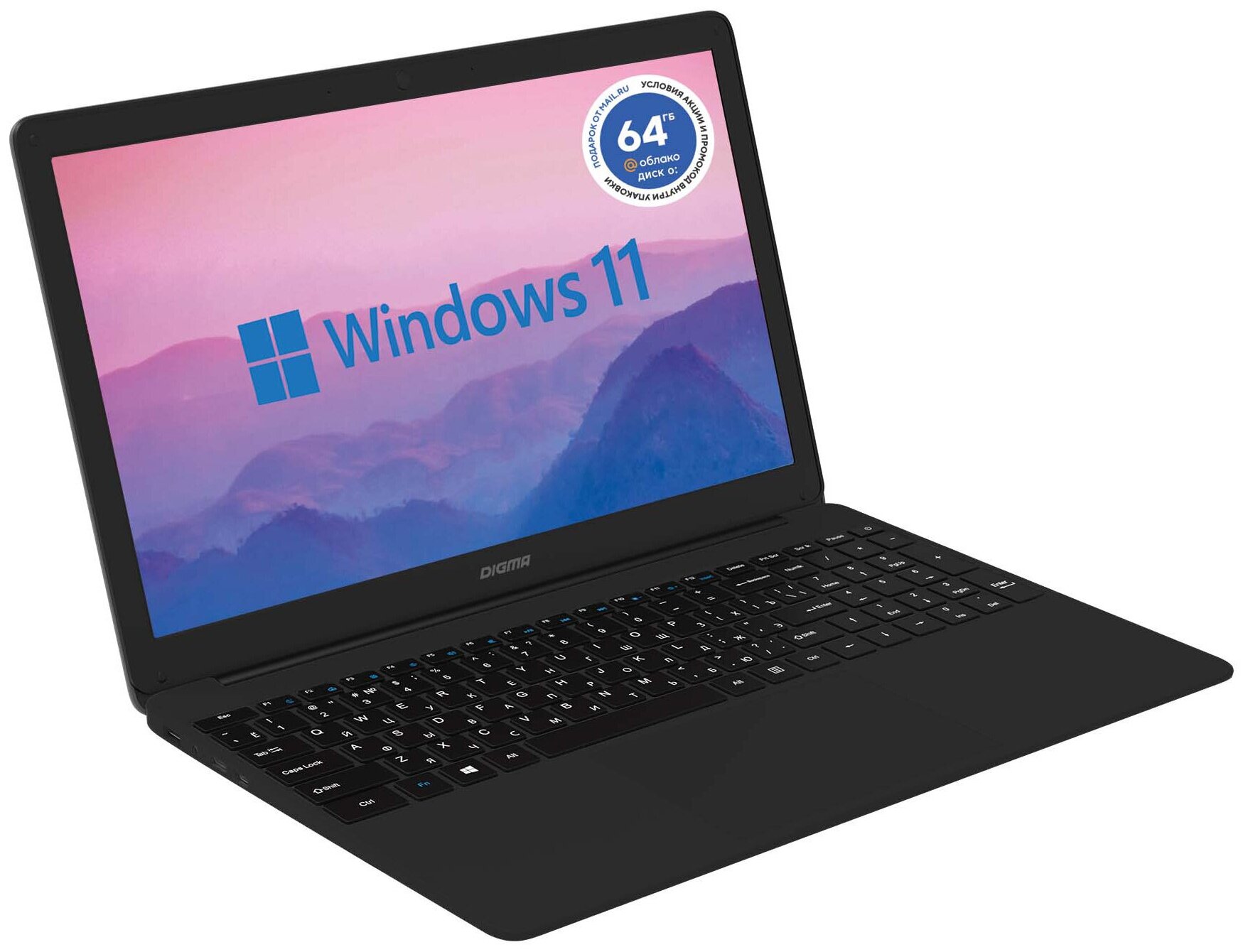 Ноутбуки Ноутбук Digma EVE 15 P417 (NCN158CXW01) black Celeron N4000/8G/256G SSD/15,6" FHD IPS/UHD Graphics 600/WiFi/BT/Win11