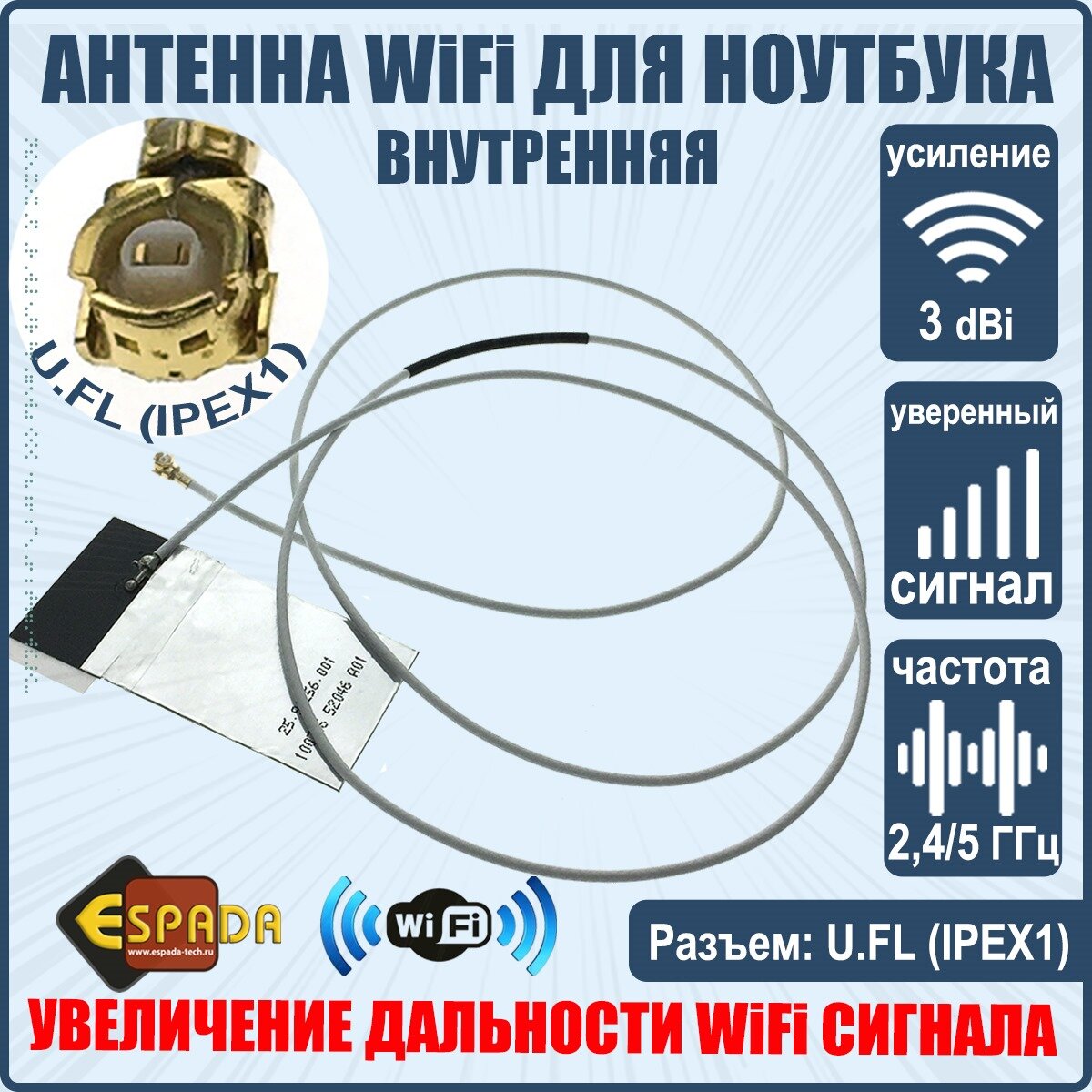 Wi-Fi оборудование Wifi Антенна внутренняя для ноутбука с разъемом U.FL + RF кабель, Espada ( I-PEX 1 для модулей mini PCIe )