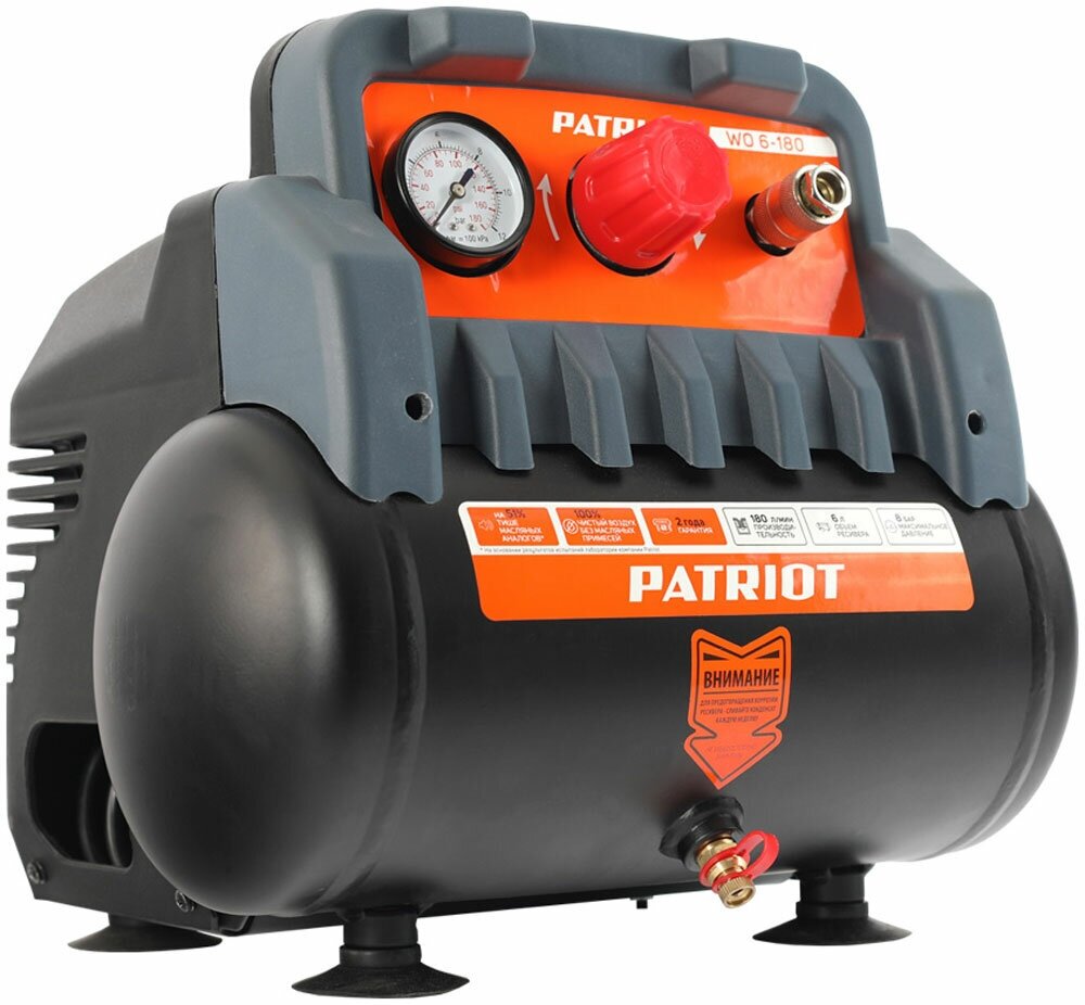 Компрессоры Компрессор Patriot WO 6-180 безмасляный 180л/мин 6л 1100Вт черный/оранжевый