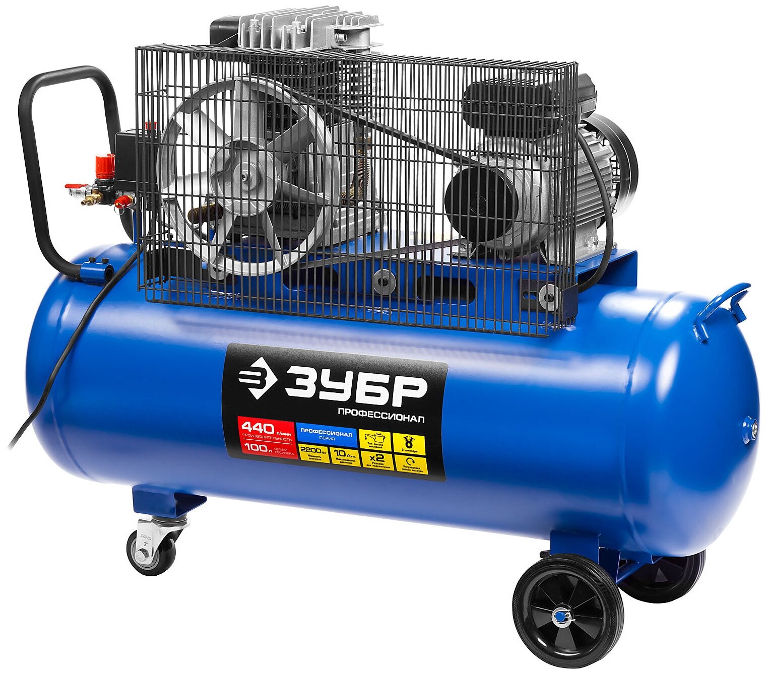 Компрессор воздушный масляный Зубр ЗКПМ-440-100-Р-2.2, 440 л/мин, 100 л, 10 Атм, 2200 Вт, 220 В