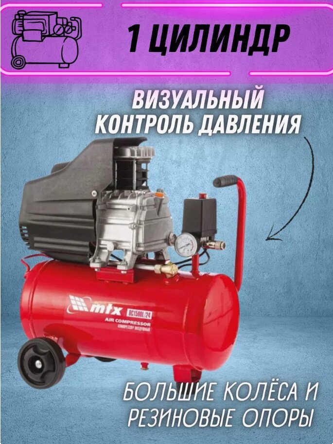 Компрессор воздушный MTX DC1500L/24 1, 5 кВт, 24 л, 210 л/мин 58003