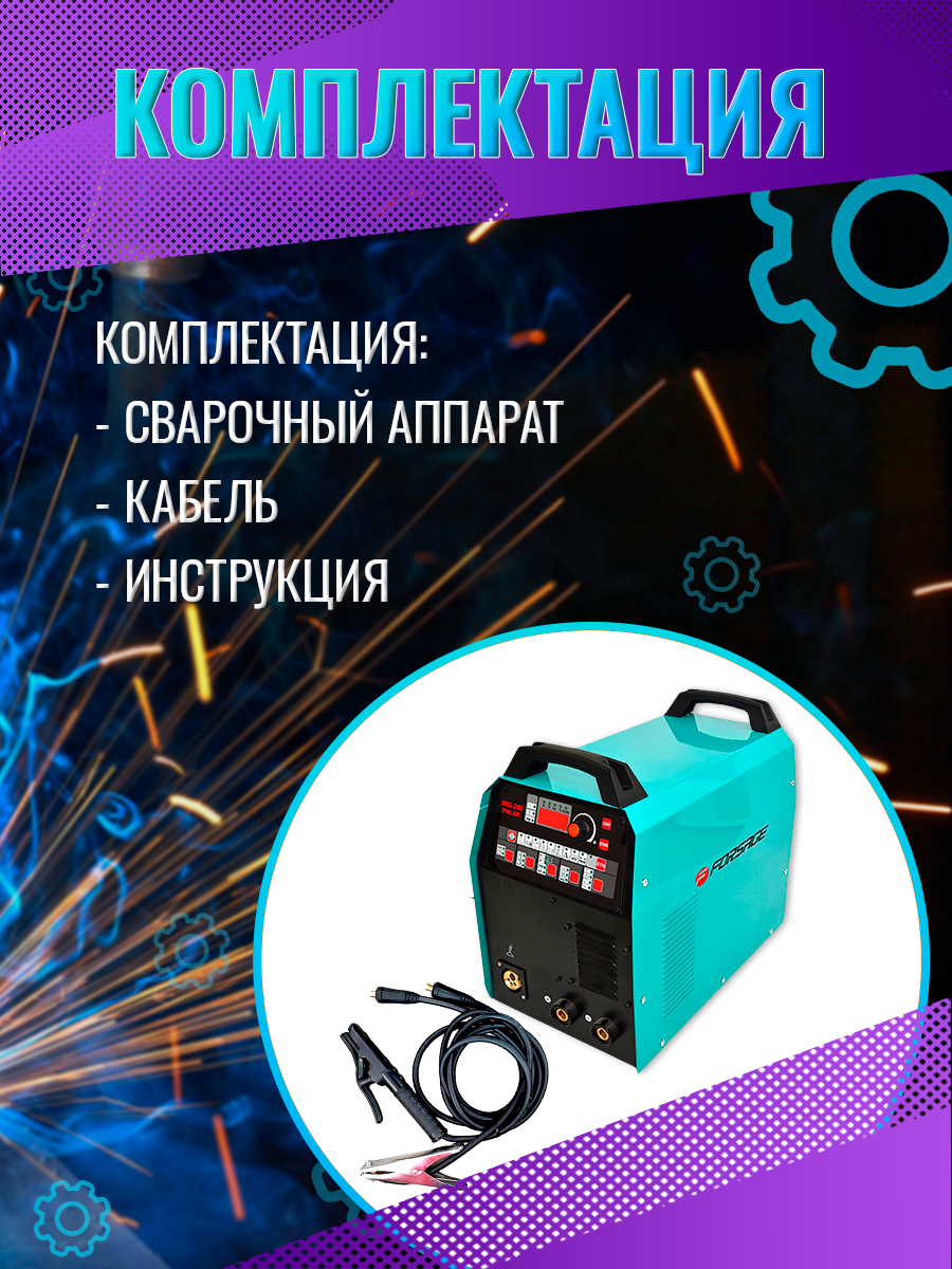 Лучшие цены. Сварочный аппарат Profi от премиум бренда Forsage для ручной дуговой сварки (MMA), полуавтоматической сварки (MIG MAG), аргонодуговой сварка (TIG). Сварочные работы невозможны без сварочного аппарата. Поэтому сварочный полуавтомат незаменим для производства любых, связанных со сваркой, ремонтных, строительных и монтажных работ. Подходит для сварки электродов с размером от 1.6 мм до 4 мм и сварочной проволоки диаметром от 0.6 мм до 1.2 мм. Аппарат позволяет работать со сварочным током в диапазоне 10-200 А. Магазины в вашем городе.