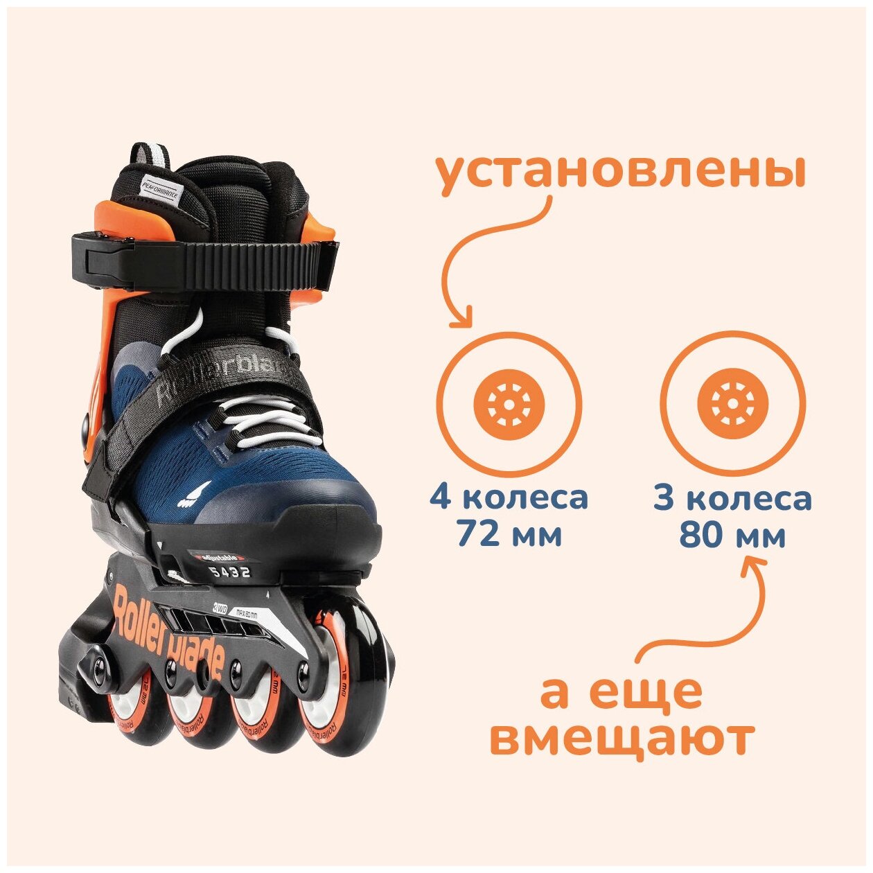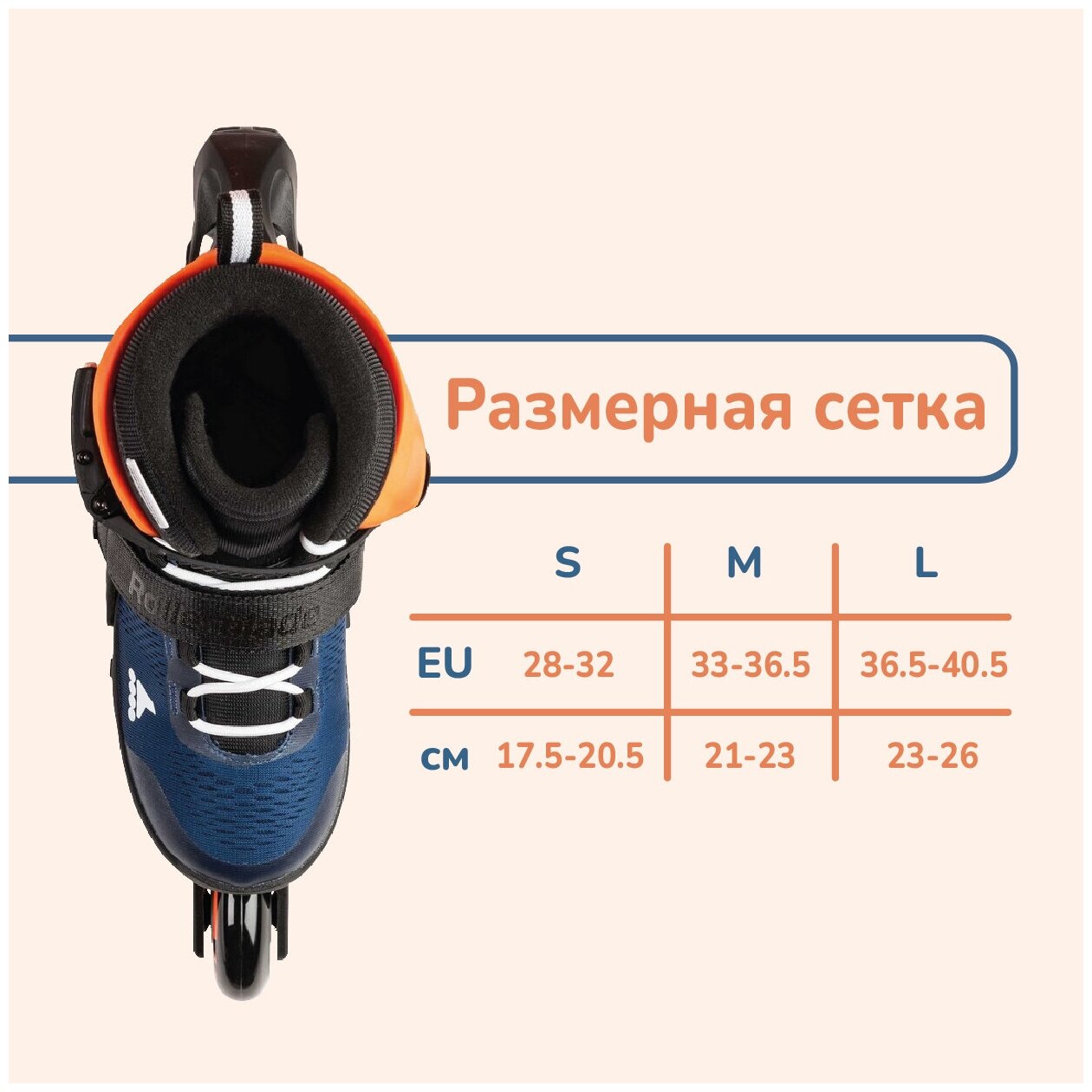 Детские роликовые коньки Rollerblade MICROBLADE midnight blue/warm orange 2022 (33-36,5)