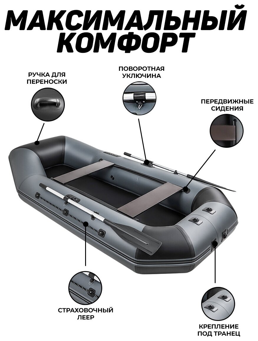 Надувная лодка ПВХ Броня-280М, 280 см, с креплением под транец