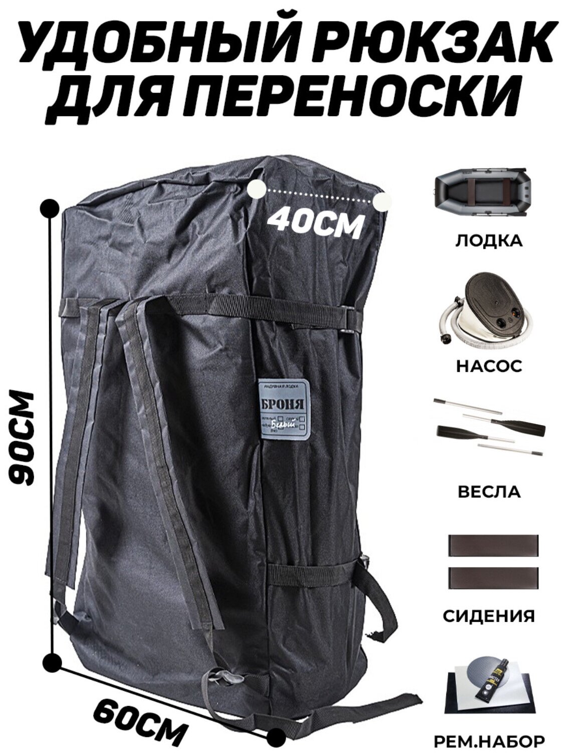 Надувные лодки Надувная лодка пвх Броня-280М с усилением серый/чёрный