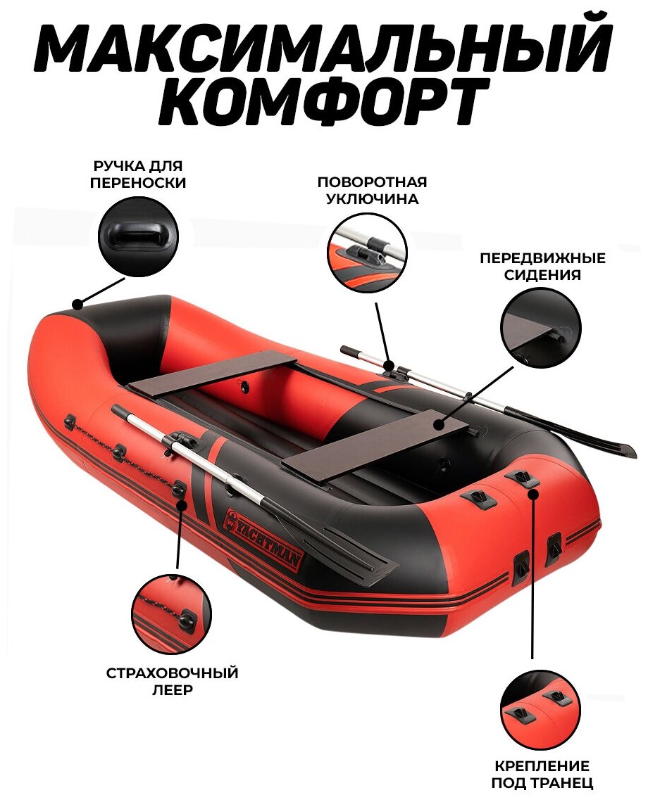 Надувные лодки Надувная лодка ПВХ YACHTMAN-280 МНД надувное ДНО с усилением красно-черная