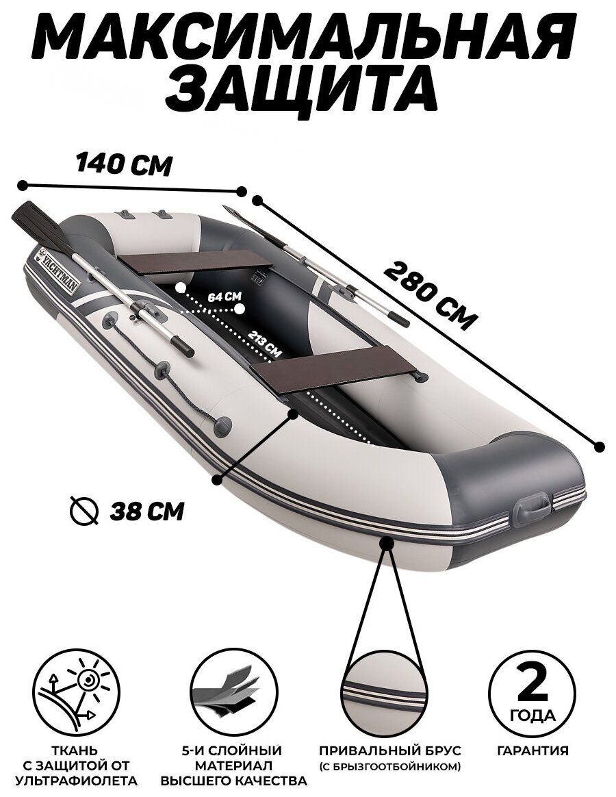Лодка ПВХ YACHTMAN 280 МНД, надувное дно, 2х-местная для рыбалки, для охоты, для отдыха, надувная