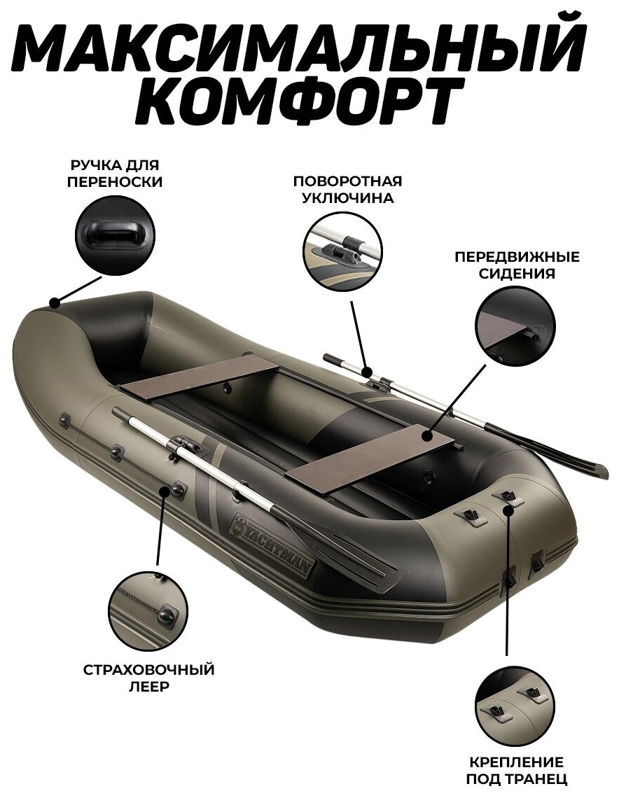 Надувная лодка ПВХ YACHTMAN-280 МНД надувное ДНО с усилением зелено-черная