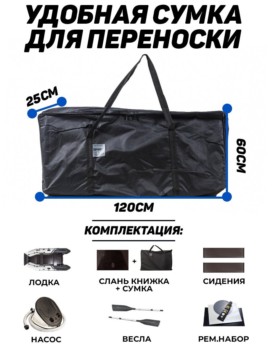 Надувная лодка ПВХ Броня 320С, моторная, с усилением, трехместная, слань в комплекте