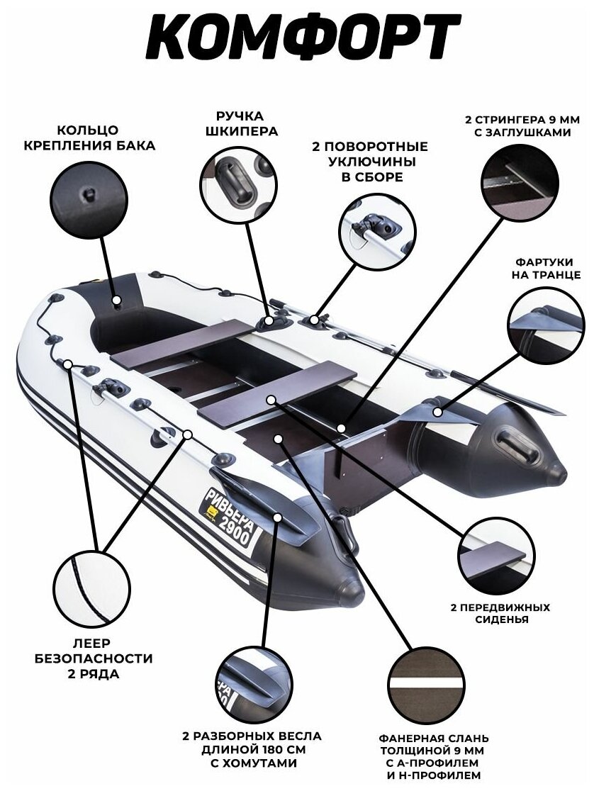 Лучшие цены. "Ривьера" - это моторно-гребные лодки премиум класса для активного отдыха на воде. Элегантный внешний вид, плавные обводы корпуса, хорошие гидродинамические характеристики, проработанная и многократно испытанная конструкция, высокая грузоподъемность, дополнительная защита дна и борта - эти качества присущи всем моделям лодок "ривьера". Большой диаметр бортов позволяет чувствовать себя в безопасности даже в условиях сильного волнения на открытых водоемах и обеспечивает достаточную глубину. Магазины в вашем городе.