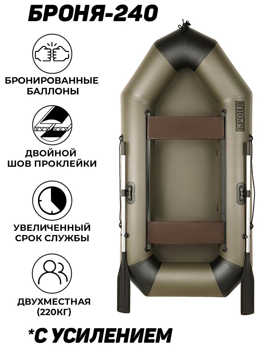 Надувные лодки Лодка ПВХ с усилением Броня-240 хаки-черный