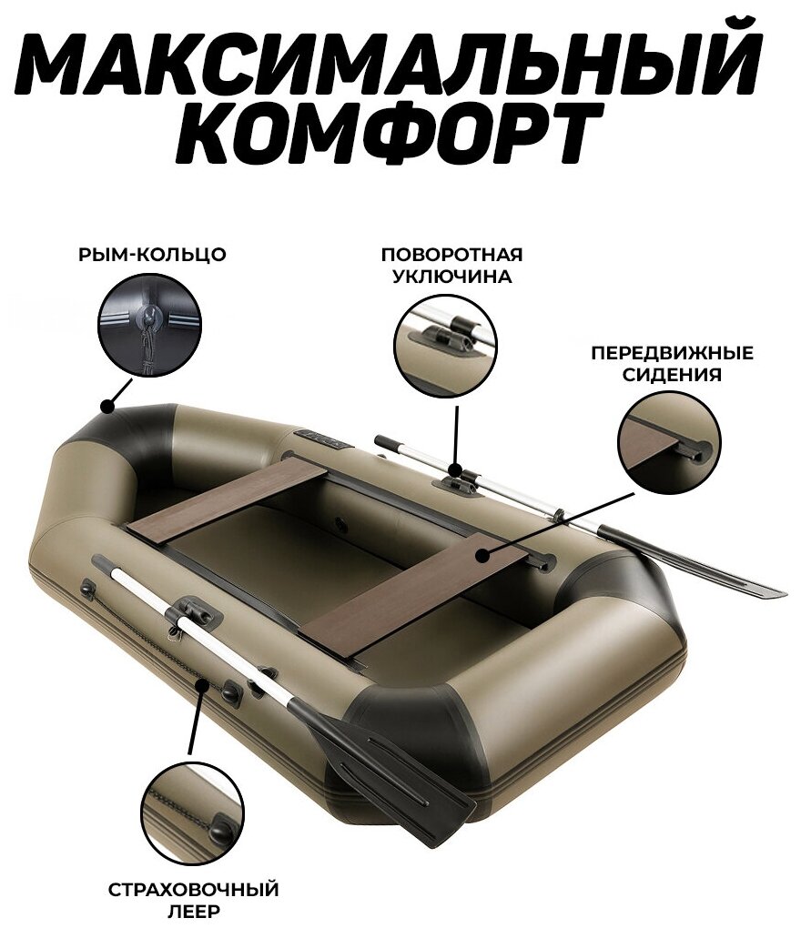 | Дополнительно | ручки для переноски / поворотные уключины / рым / леерный трос |