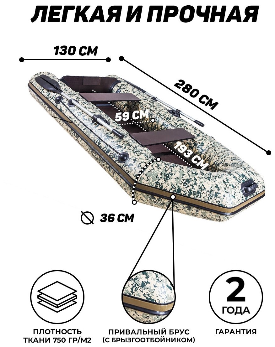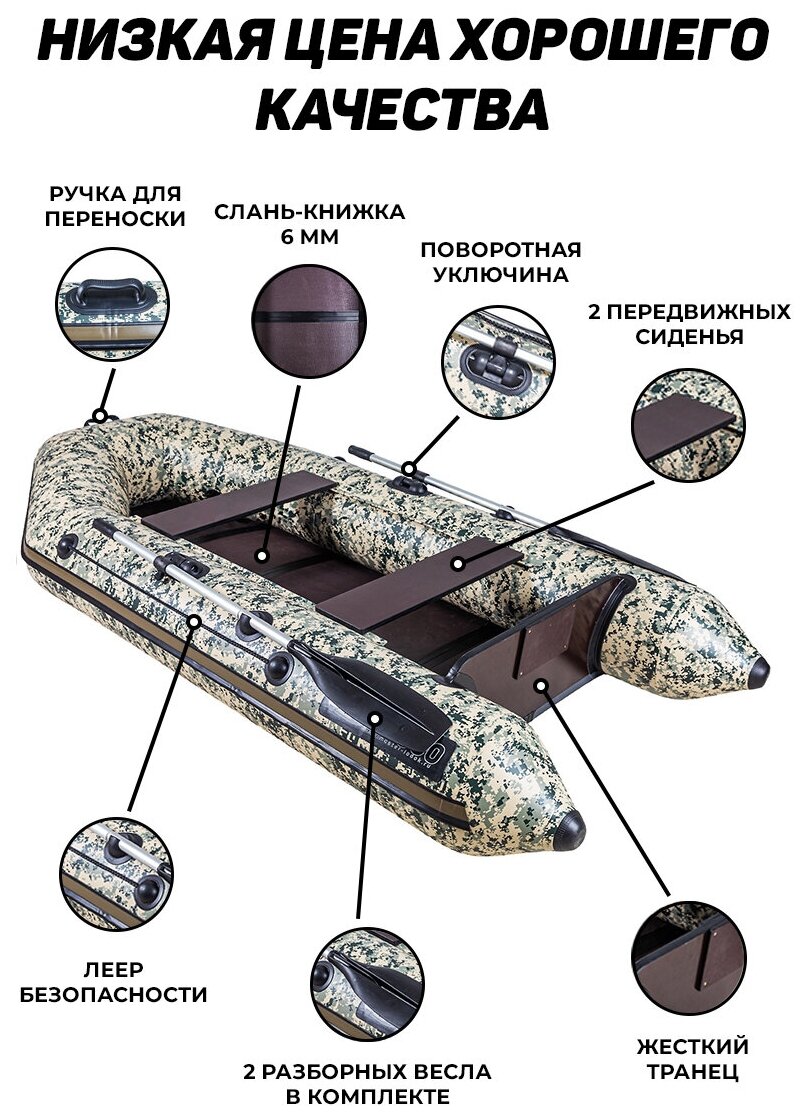 Аква 2800 СК слань+киль камуфляж (лодка пвх под мотор)