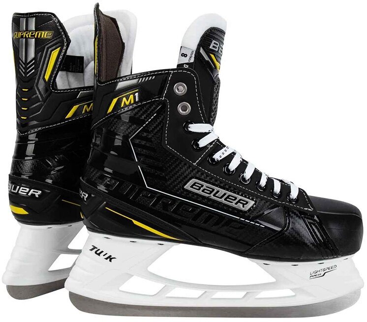 Лучшие цены. Коньки BAUER SUPREME M1, любительская модель линейки SUPREME 2022 года. Данные коньки разработаны для игроков любителей. Внешний материал конька изготовлен из смеси различных материалов с использованием 3D поликарбоната. Для комфорта коньки имеет стандартный семеричный дизайн. Отличительные особенности данного конька - хорошая степень поддержки, презентабельный внешний вид, а также высокий уровень комфорта. Магазины в вашем городе.