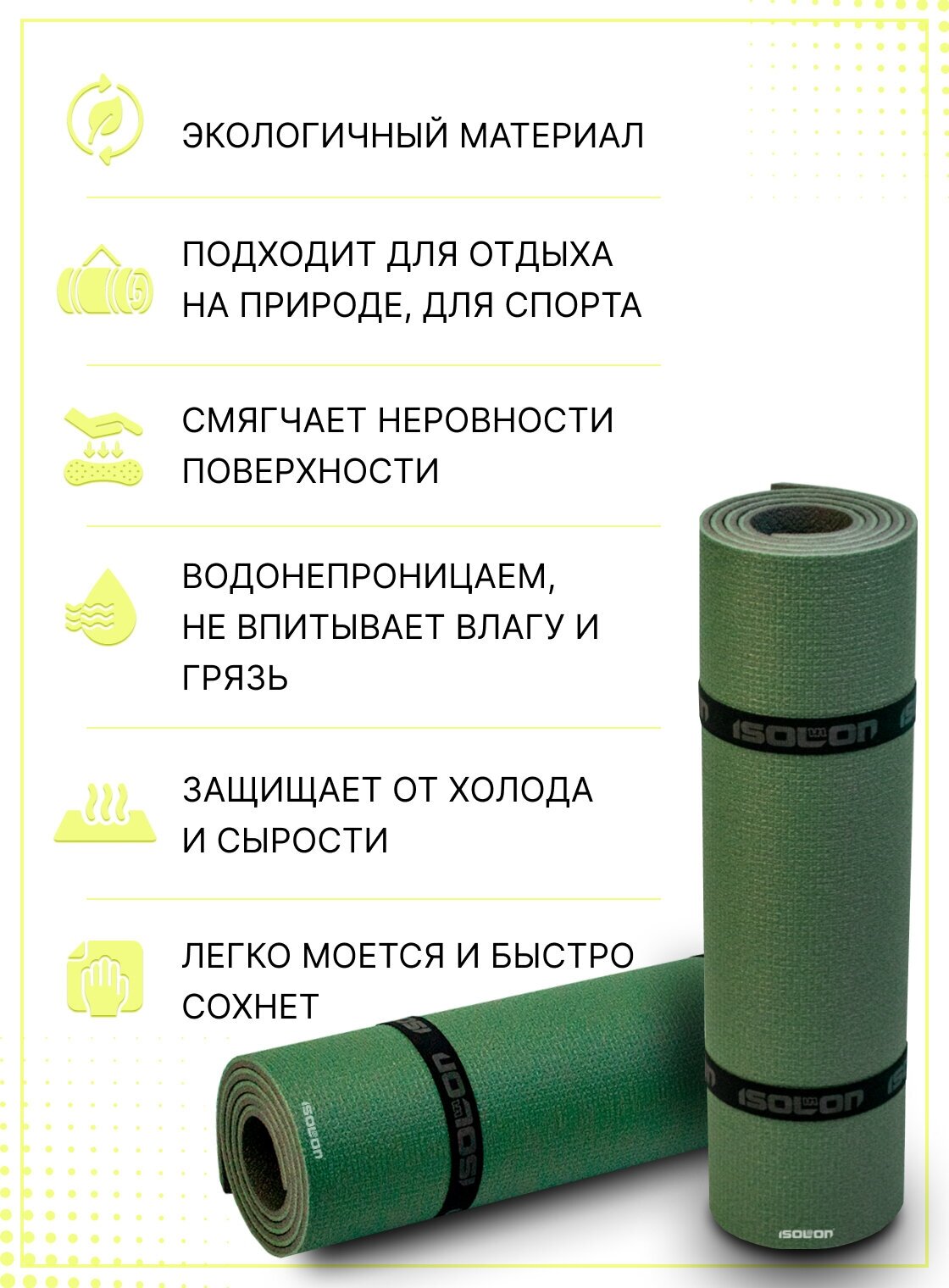 Туристические коврики Коврик для туризма и отдыха удлиненный Isolon Optima Light S10, 200х60см серый/хаки