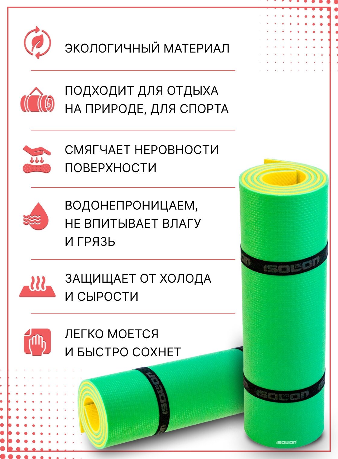 Туристические коврики Коврик для активного отдыха и спорта Isolon Camping 12 мм, 180х60 см жёлтый/зеленый