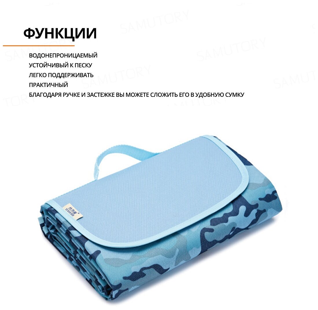 Туристические коврики Samutory / Водонепроницаемый коврик для пикника 150х200см Синий камуфляж (Сумка-покрывало/плед для пляжа)
