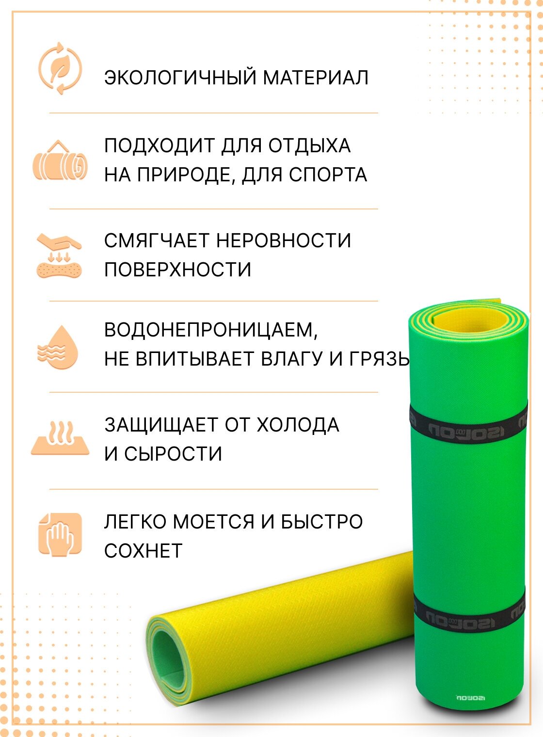 Туристические коврики Коврик для туризма и отдыха классический Isolon Tourist 8 мм, 180х60 см зеленый/жёлтый