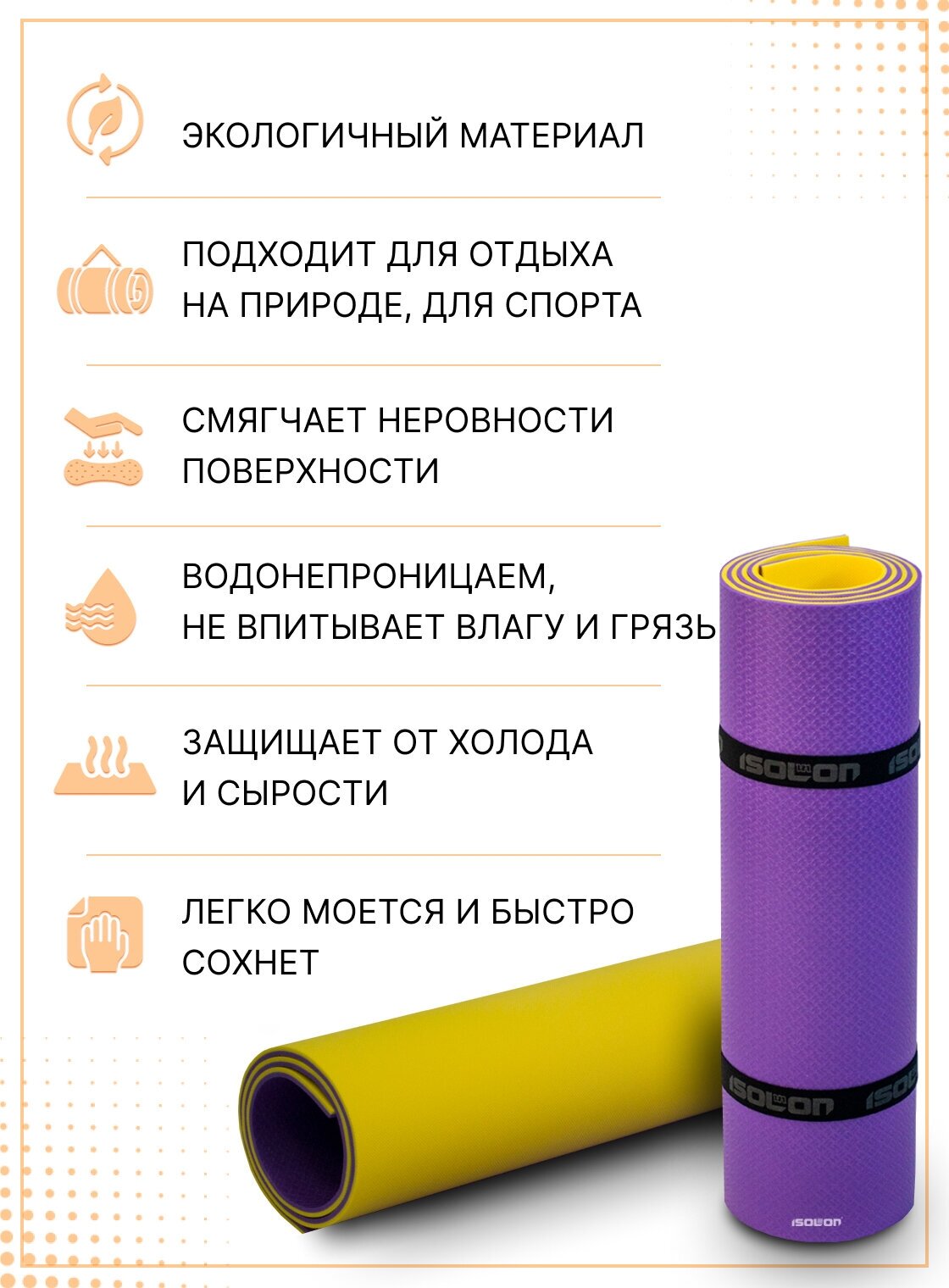 Туристические коврики Коврик для туризма и отдыха классический Isolon Tourist 8 мм, 180х60 см жёлтый/фиолетовый