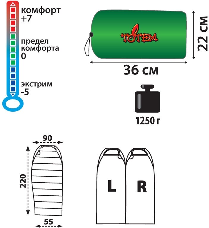 Спальный мешок Мешок спальный Totem Hunter XXL (220x90) (Правый) (ТК: +7°C)