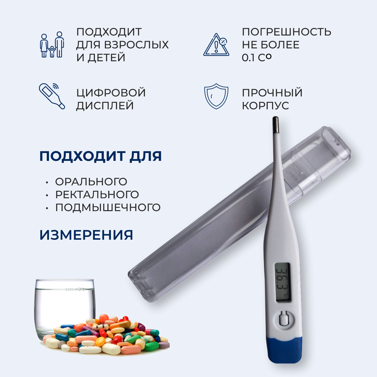 | Область применения | подмышечный / оральный / ректальный |