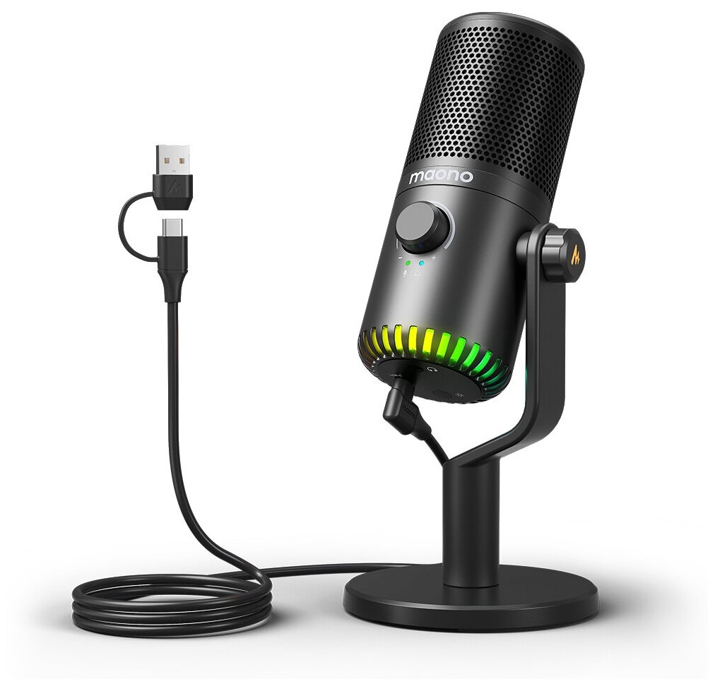 Микрофоны Микрофон MAONO, модель DM30 с RGB подсветкой, USB, черный