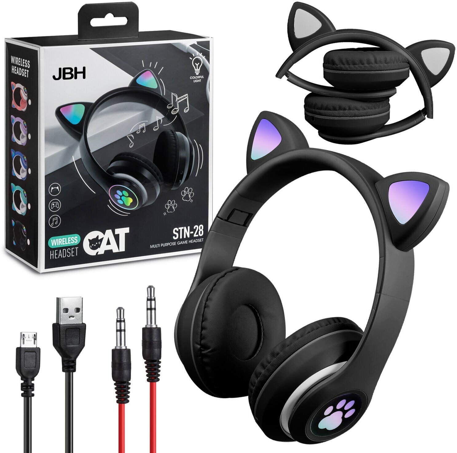 Беспроводные наушники "Кошачьи ушки", светящиеся, CAT STN-28 (черные)