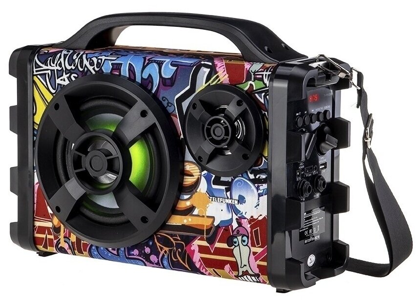 Лучшие цены. Новинка в модельном ряду портативной акустики от Telefunken TF-PS1255B - это настоящий мощный звук и разнообразие функционала в одном устройстве. За превосходное качество звука в системе отвечают два динамика, размером 5,25" и 2" соответственно, и фазоинвертор, благодаря которым выходная мощность звука составляет до 30Вт. Прослушивать музыкальные композиции возможно как по беспроводному Bluetooth соединению, так и посредством подключения через аудиовход AUX-in (3.5mm jack). Магазины в вашем городе.