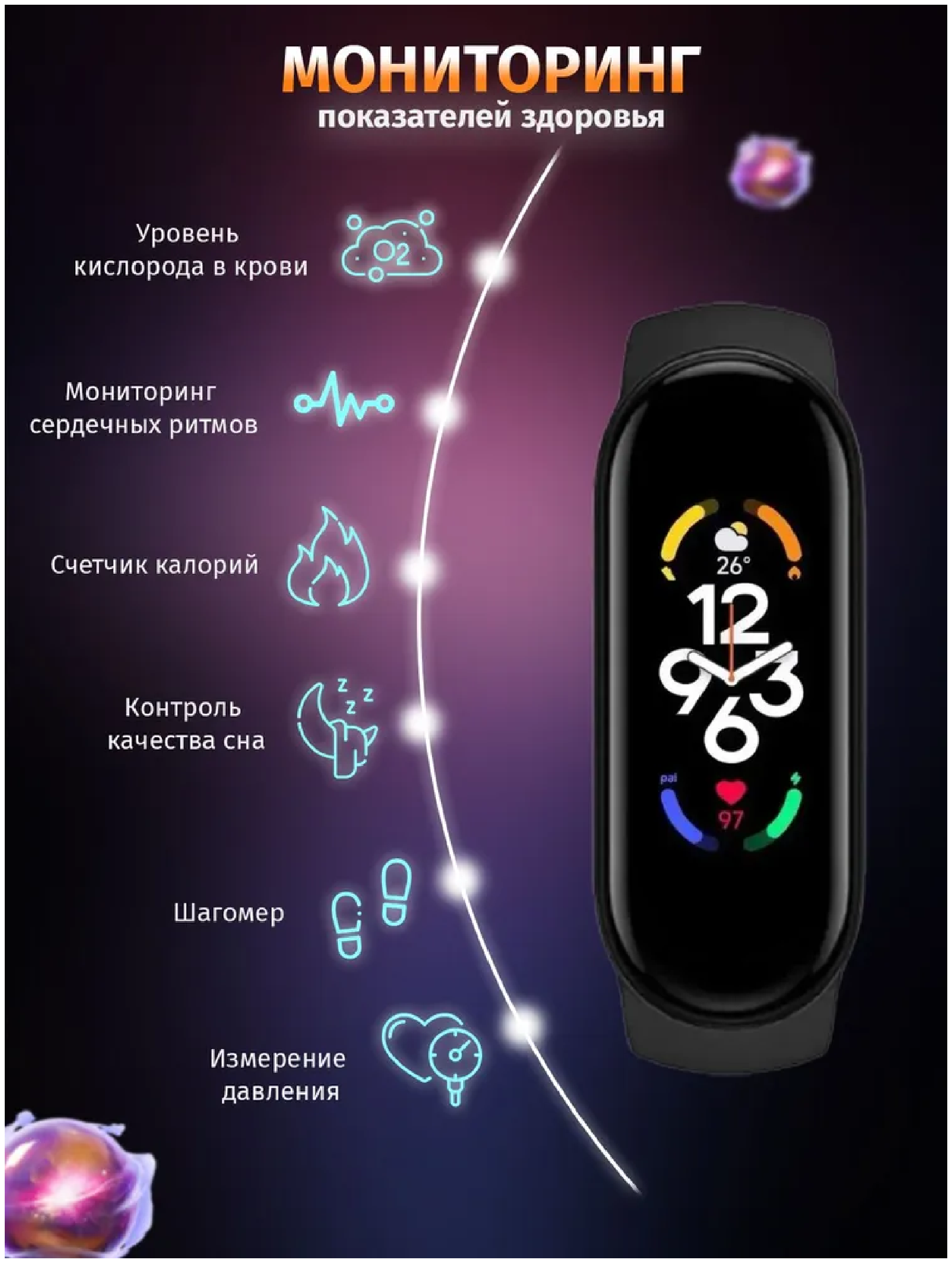 Смарт часы и фитнес браслеты Фитнес браслет умный браслет Smart Band 7 (чёрный) 2 ремешка в комплекте