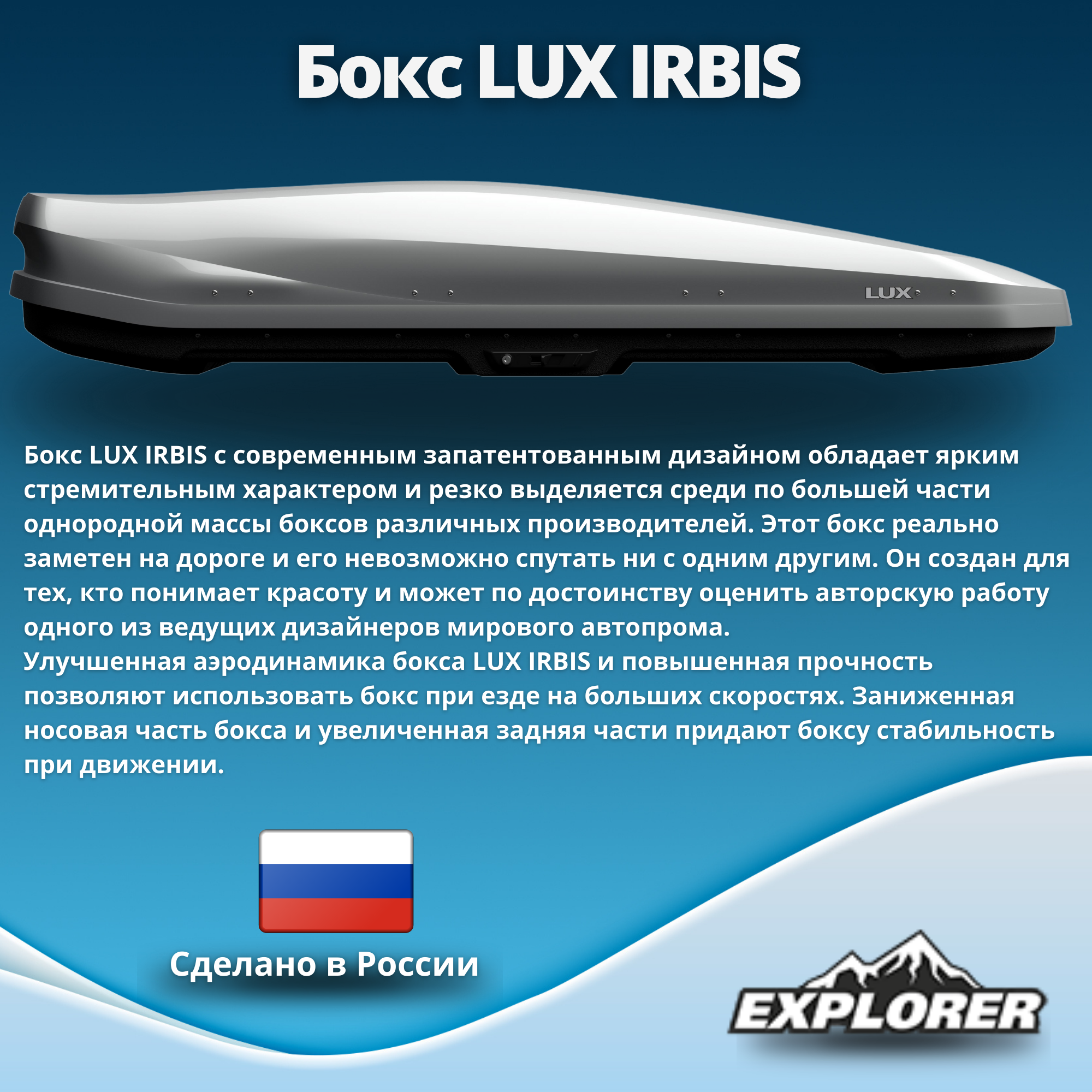 Лучшие цены. Автомобильный бокс LUX IRBIS 206 (Люкс Ирбис 206 ) с новым великолепным дизайном создан с учётом всех пожеланий потребителей и дополнительно усилен металлическим каркасом на дне бокса для предотвращения перекосов при неравномерной загрузке. Люкс Ирбис 206 – бокс выделяется своим агрессивным дизайном способным дополнить экстерьер всех современных автомобилей . Оттестированная на собственном испытательном полигоне и в аэродинамической трубе , а так же в реальных условиях суровой и беспощадной эксплуатации. Магазины в вашем городе.