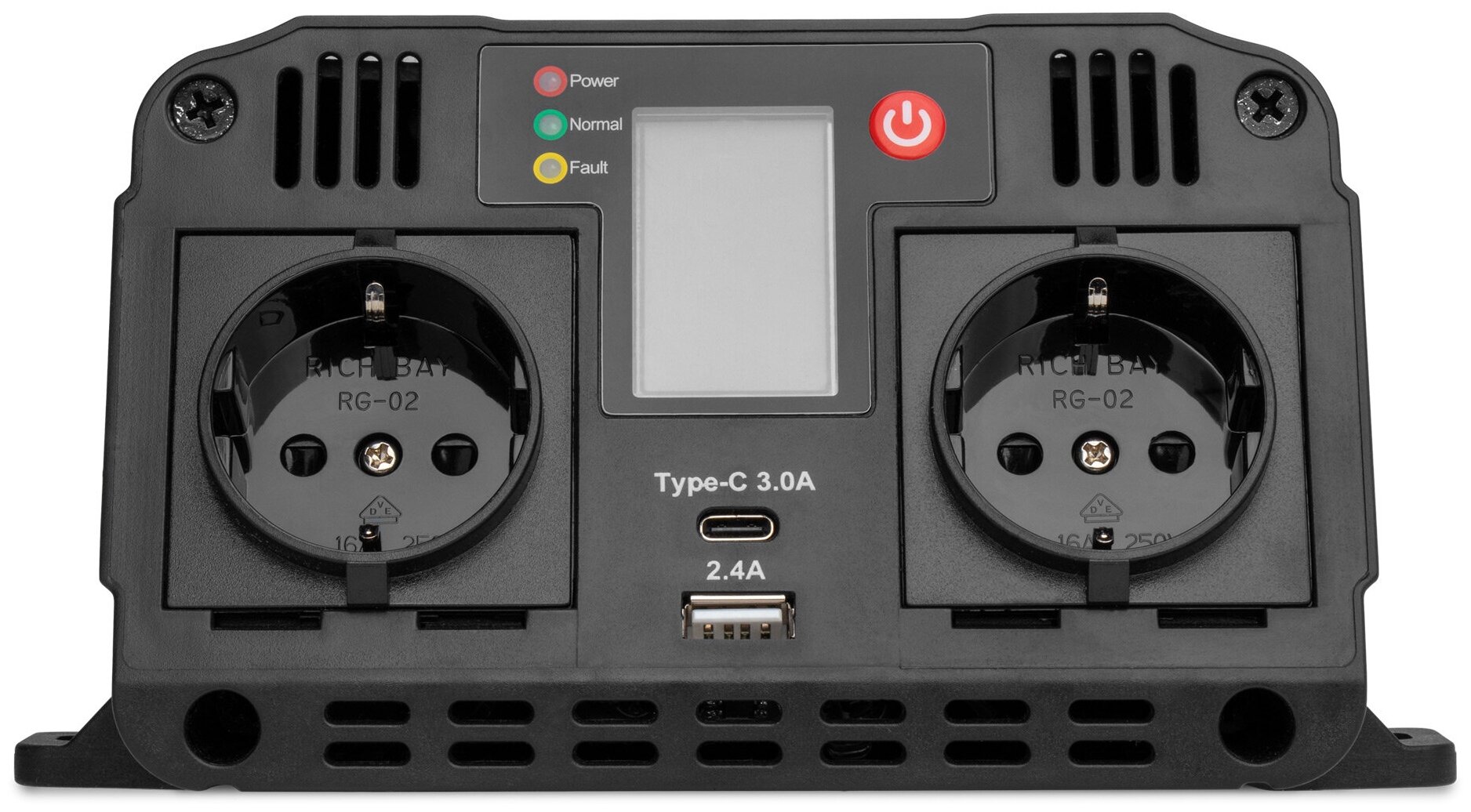 Инверторы Автомобильный инвертор TopON TOP-PI1202 1200W 2 розетки, USB, Type-C, LCD экран, пиковая мощность 2400W Черный