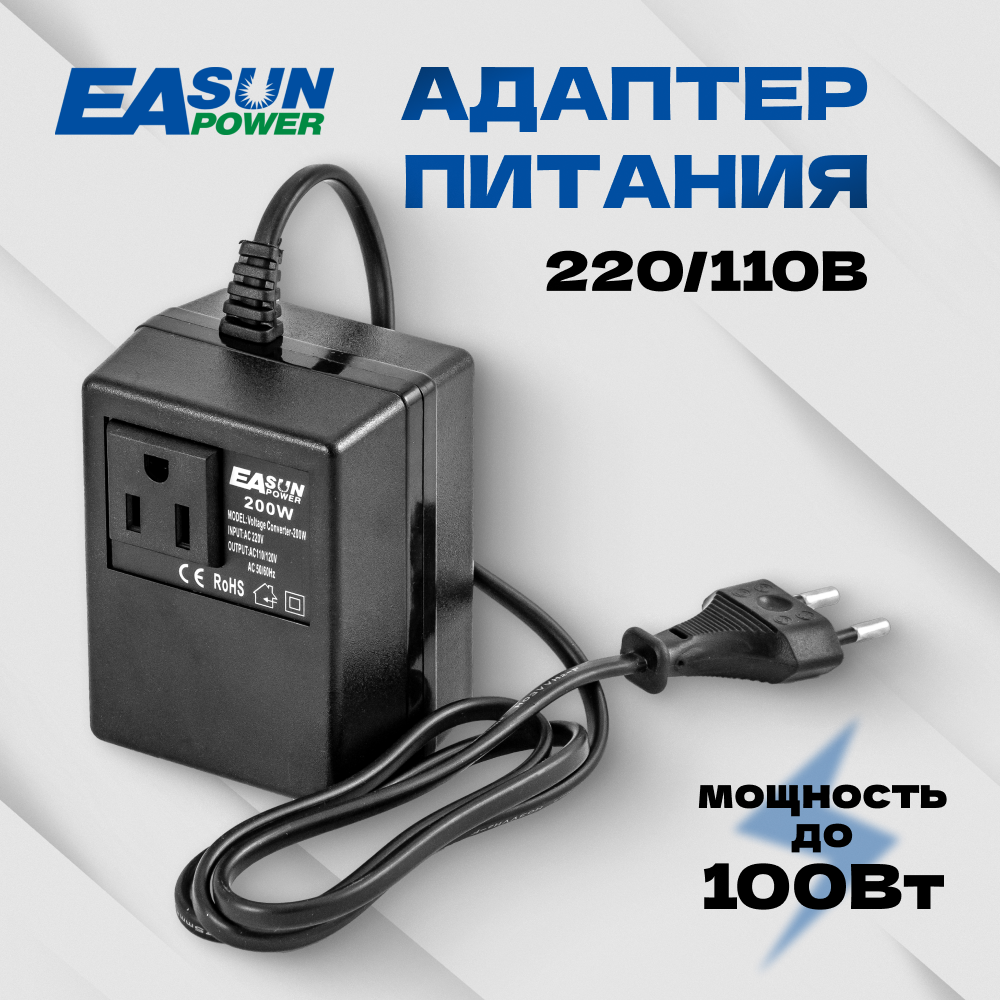 Инверторы Адаптер питания 220/110В. Подключение приборов, работающих от 110В к сети 220В. Мощность до 100Вт. Понижающий трансформатор. Инвертор напряжения.