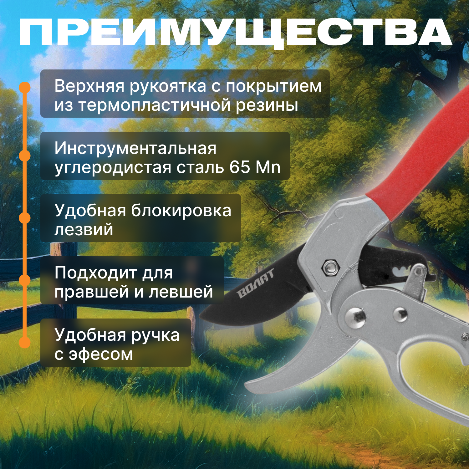 Секатор универсальный садовый волат (59060-01) кусторез, сучкорез ручной, ножницы садовые для деревьев, кустарников, цветов