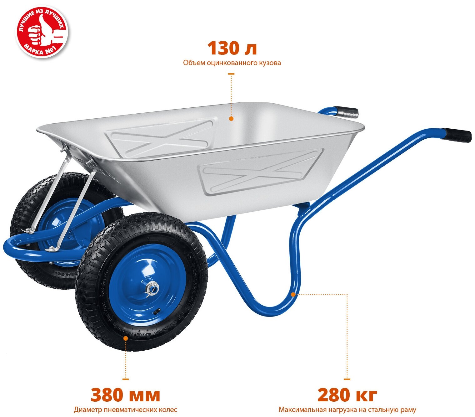 Тачка ЗУБР ПТ-350 39913, 130 л, 280 кг