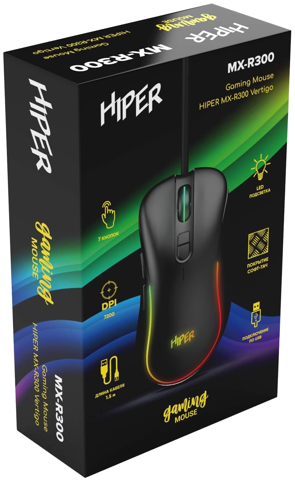 Мышь игровая Hiper MX-R300 Vertigo 7кн, 7200DPI, кабель 1.5м, Usb, черный