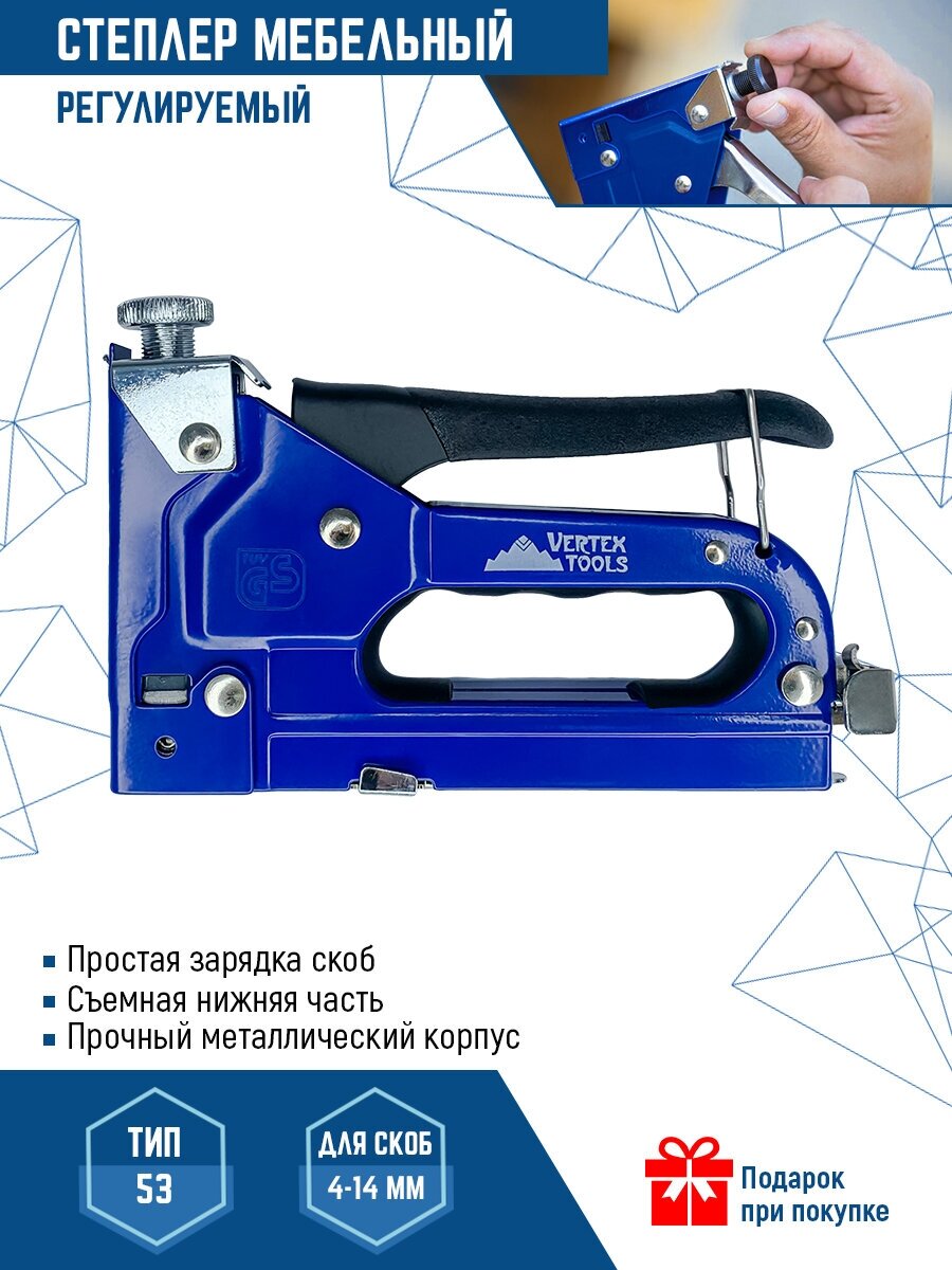 Строительный степлер Скобозабивной пистолет VertexTools 53 тип 4-14 мм степлер мебельный