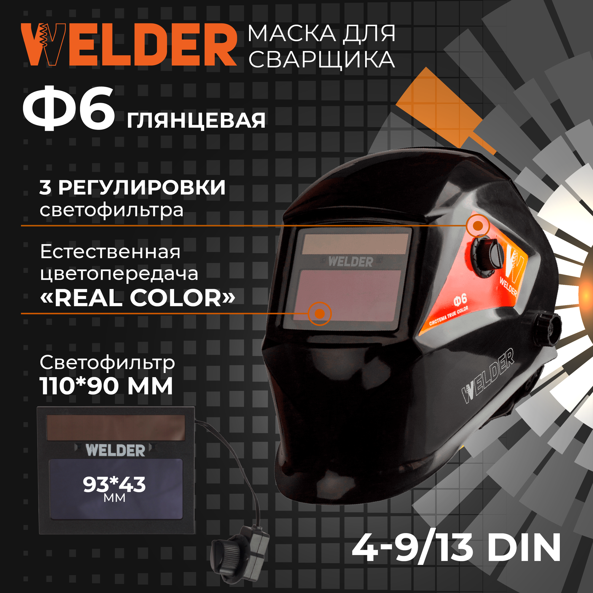 Маска сварочная Маска сварочная WELDER PRO Ф6 REAL COLOR Хамелеон 93x43 мм, DIN 4/9-13 (Внешняя регулировка), в коробке