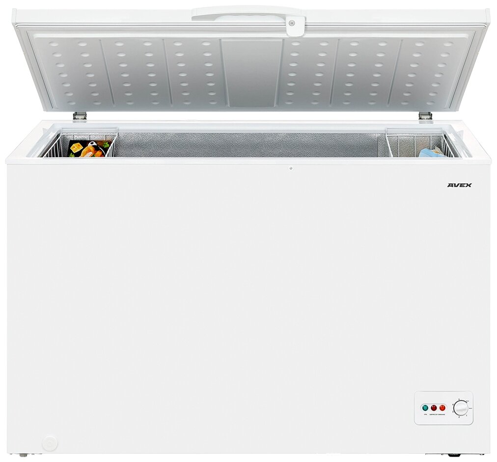 Лучшие цены. AVEX CF 420 — вместительный морозильный ларь объёмом 405 литров, в котором одновременно можно разместить много продуктов для длительного хранения. Ларь отлично подойдет для как для магазинов, так и для домашнего использования. Часть продуктов, которые вам требуются чаще, удобно хранить в 2-х подвесных корзинах. Надёжный компрессор обеспечивает бесперебойную работу и экономит электричество. Класс энергоэффективности — А+. Так же в ларе предусмотрен замок — это защита от случайного открытия крышки. Магазины в вашем городе.